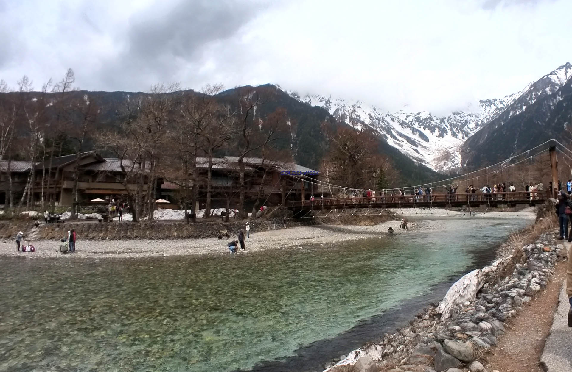 หรือลงก่อนถึง 1 ป้าย Taisho Pond (大正池) เดินชมวิวทางเดินเรียบลำธารไปยังสพานคัปปะบาชิได้เช่นกัน